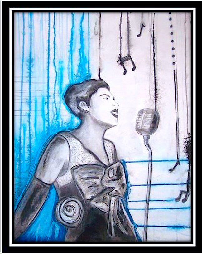 "Billie Holiday" Acrylic, Pastel, Ink, 22x28" (Sold)