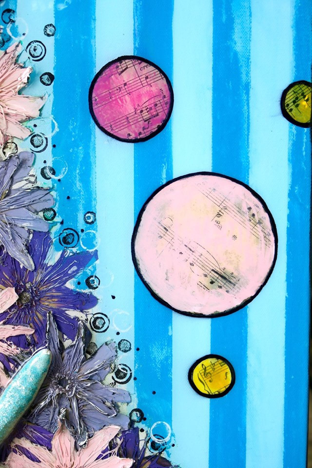 "Agave, The Sea Nymph (Nereid Known As 'The Illustrious')" Acrylic, Ink, Antique Sheet Music c.1880s, Starfish, Sea Urchins, Shells, Antique Glass Beads, with Glossy Resin Glaze (shines like glass) on Canvas, 24x48x3"