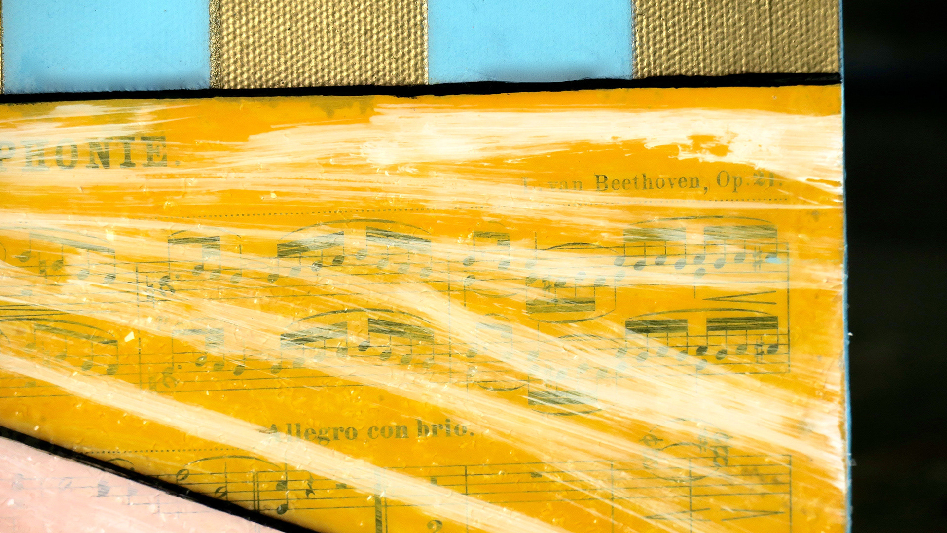 "Marilyn's Soup Symphony Suite: Vol. I" Acrylic, Ink, Original Rare Antique Campbell's Tomato Soup Can c.1922, Photograph of Marilyn Monroe by Philippe Halsman in 1959 (floating 2" from canvas), Antique Sheet Music c.1893 of Beethoven's 'Symphony I', 5watt light (*soup can lights up*), Diamond Dust (twinkle effect) with Glossy Resin Glaze (shines like glass) on Canvas, 22 x 28 x 2” SOLD