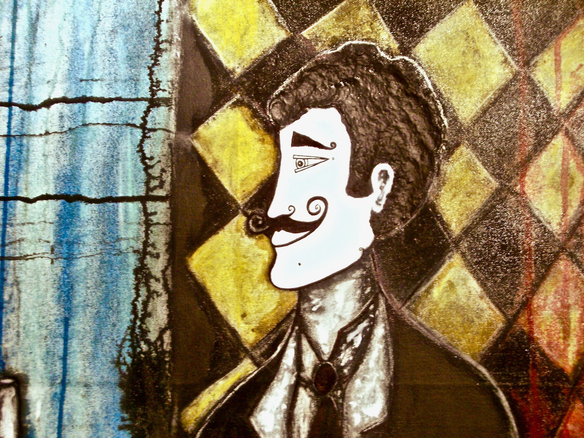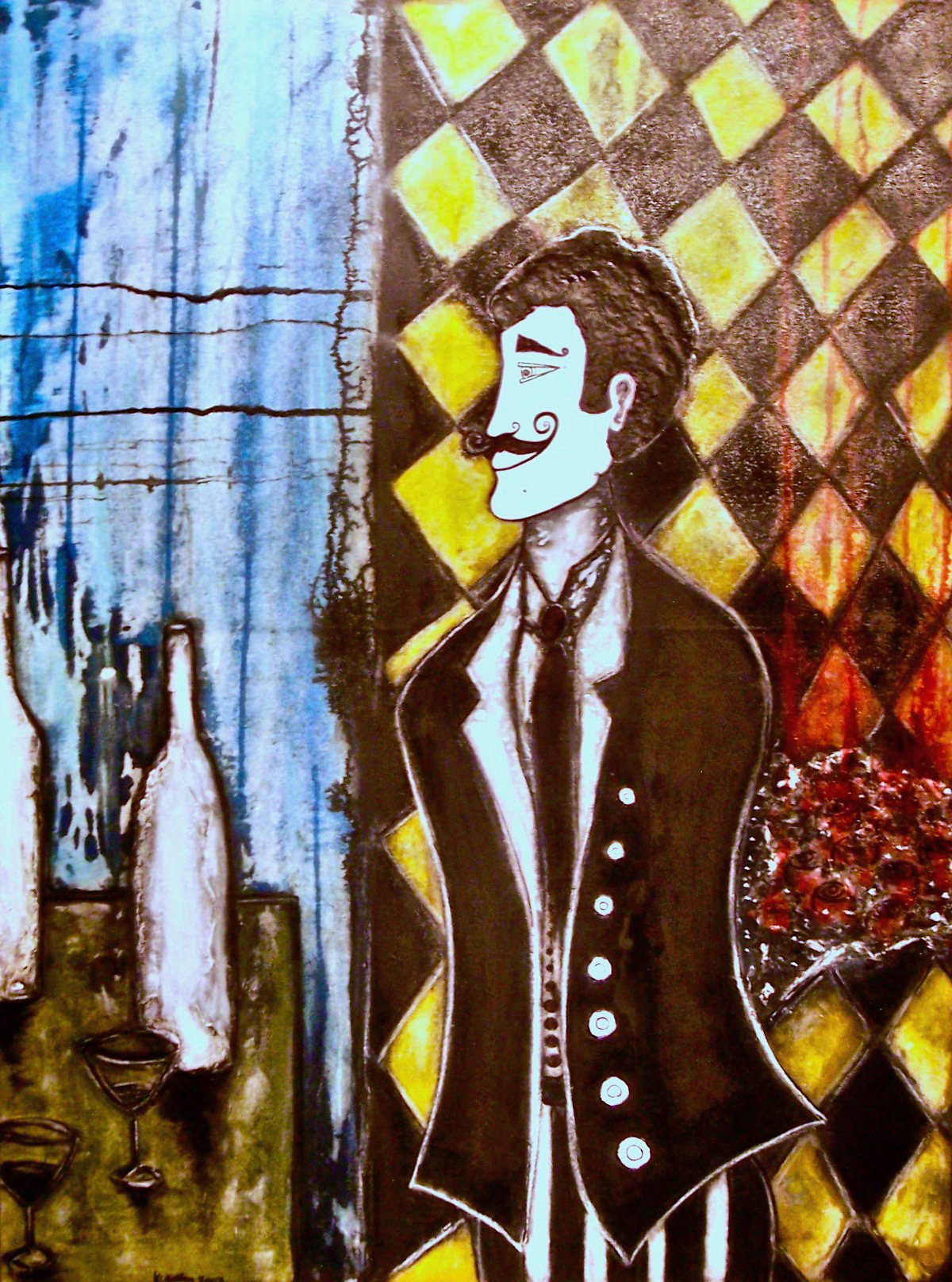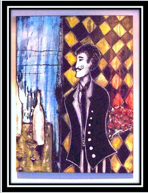 "The Proposal II" Acrylic, Ink, Paper Mache on Canvas, c.2006, 32 x 48 x 1" (Sold)