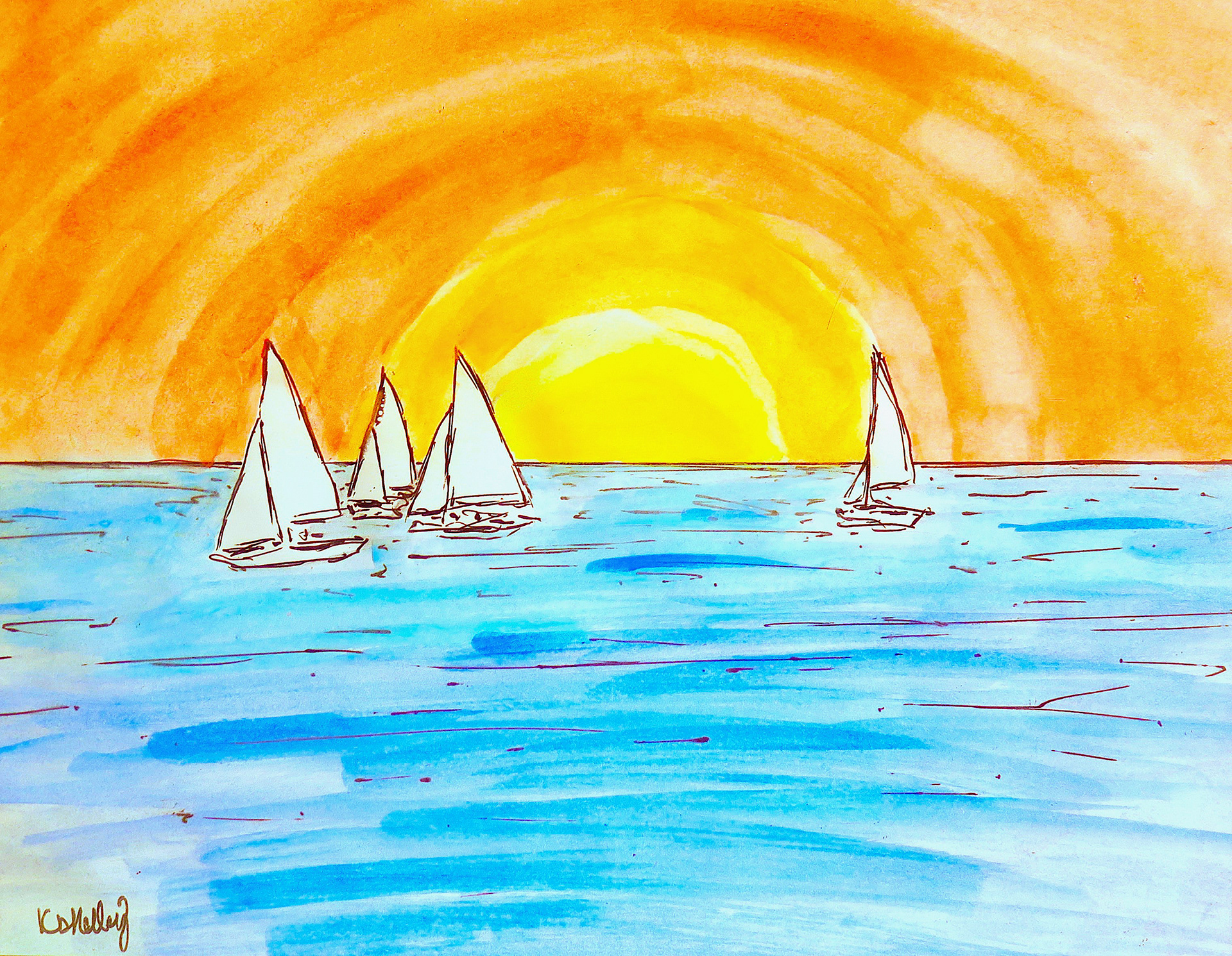 "Watercolors of Key West"" Acrylic, Ink on Canvas, 7x10x2" (Sold)